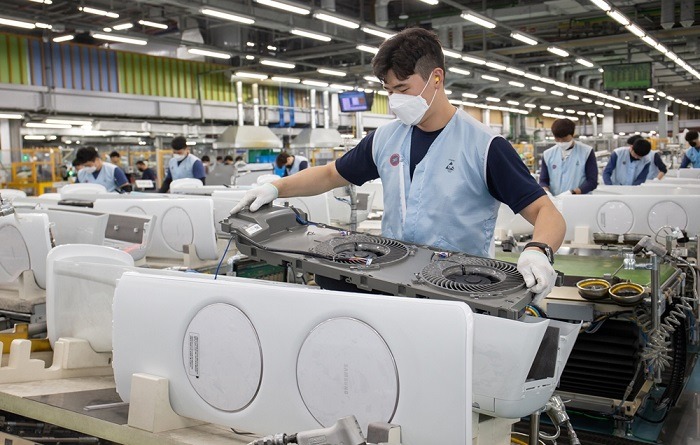 광주광역시 광산구 하남산단 6번로에 위치한 삼성전자 광주사업장에서 직원들이 ‘무풍에어컨’을 생산하고 있다.
