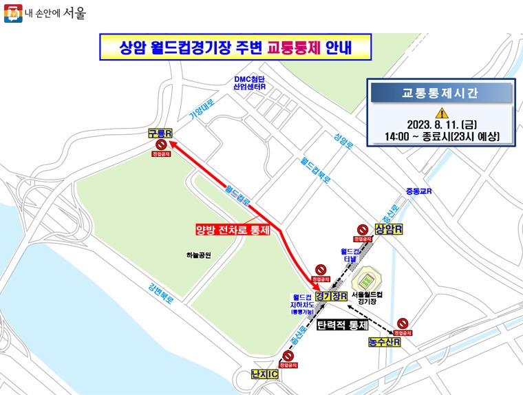 8월 11일(금) 2023 새만금 세계스카우트 잼버리 콘서트 개최 관련정부 교통대책 시행에 따라, 서울시는 이용가능한 전 홍보매체를 동원해 교통통제, 혼잡상황 등을 실시간으로 적극 안내하여 시민 불편을 최소화한다.