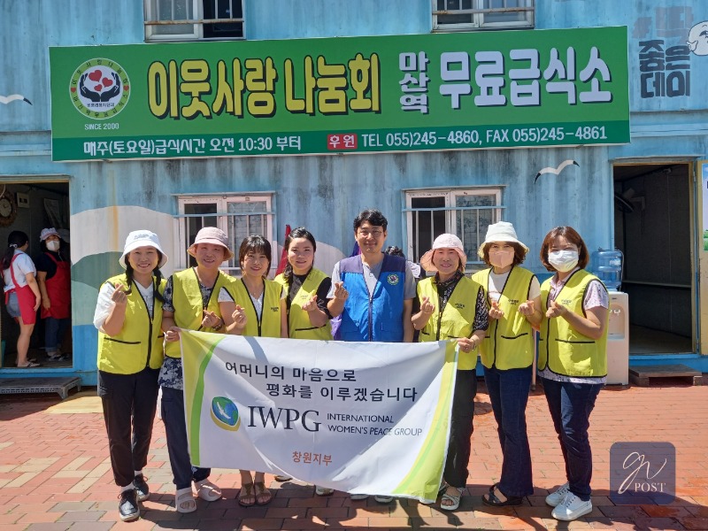 세계여성평화그룹(IWPG) 창원지부는 8월 12일 오전 창원시 마산역 옆에 위치한 이웃사랑나눔회의 무료급식소를 찾아 배식,설거지,청소 등 의 봉사활동을 이어갔다.