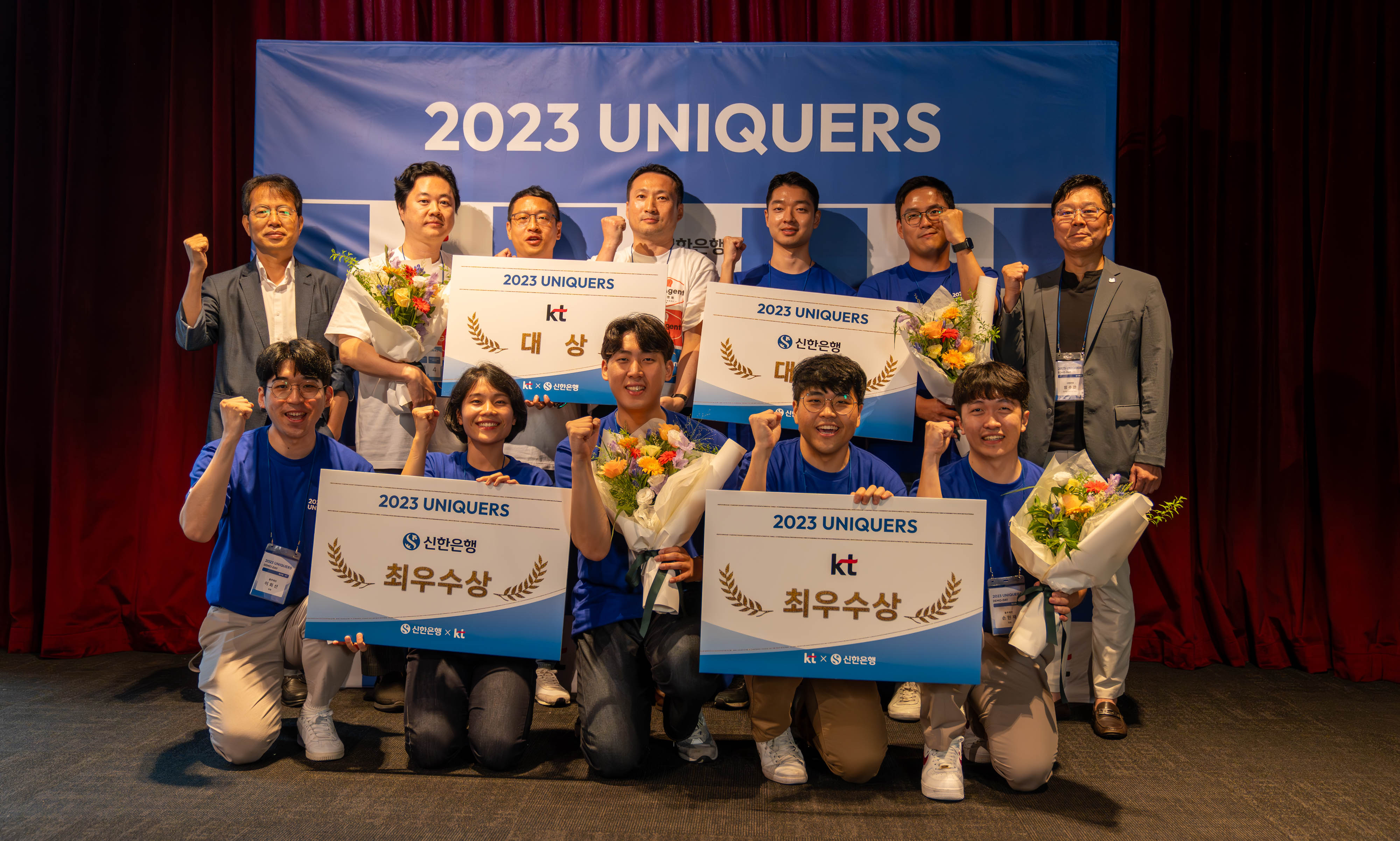양사는 지난 8월 11일 서울 마포구의 라이즈 오토그래프 컬렉션에서 '2023 UNIQUERS' 데모데이를 열고, 서류심사와 PT심사를 통과한 9개 팀의 사업계획서를 평가해 우수 아이디어 4개(KT 2개, 신한은행 2개)를 최종 선정했다. 또, 각 팀의 신사업 아이디어를 전시한 오픈 부스도 운영했다.
