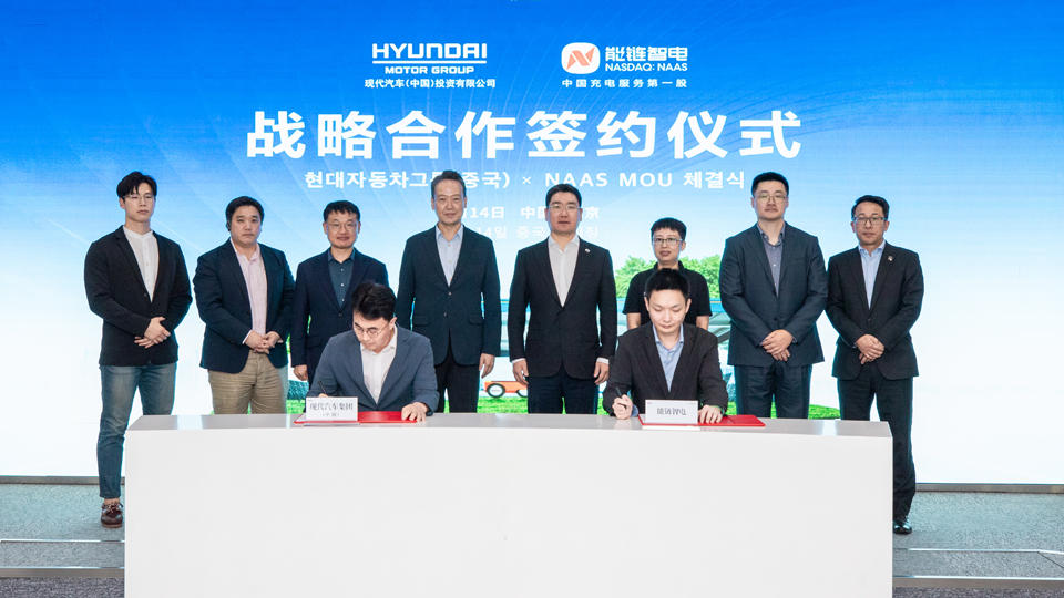 현대자동차그룹은 중국 전기차 충전 정보 서비스 업체 NaaS와 14일 중국 베이징에 위치한 NaaS 사옥에서 이혁준 현대자동차그룹 중국 유한공사(Hyundai Motor Group China, HMGC) 전무, 왕양 NaaS 최고경영자(CEO) 등 양사 관계자가 참석한 가운데 중국 전기차 충전 서비스 협력을 위한 업무협약(MOU)을 체결했다.