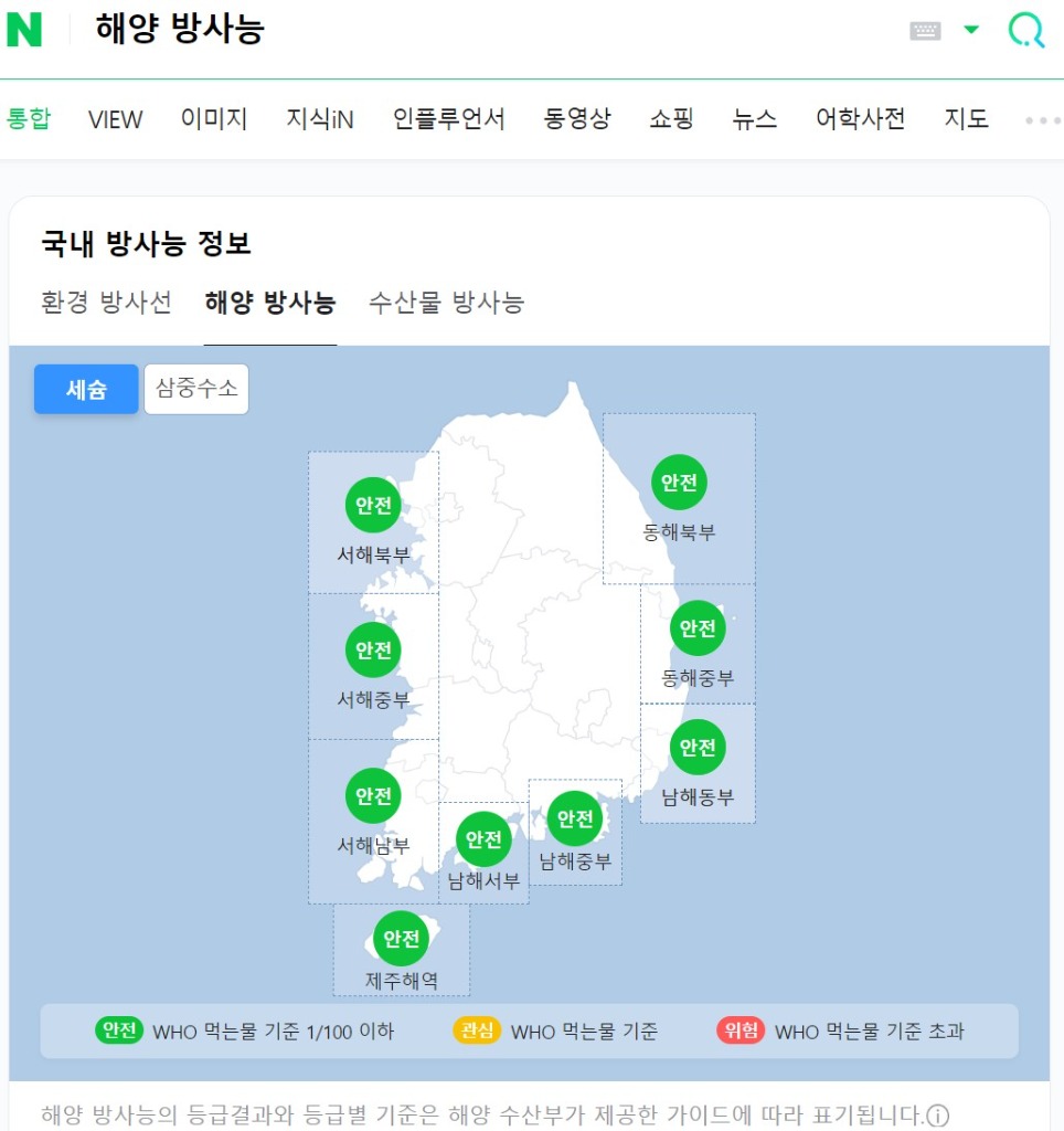 포털사이트 네이버에서 수산물 안전성뿐 아니라 우리 바다의 방사능 안전 정보도 간편하게 확인할 수 있게 됐다.