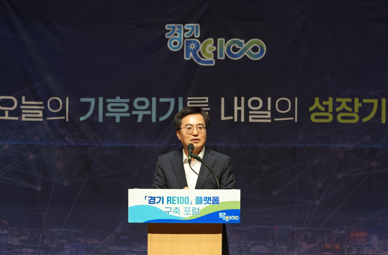 경기도는 16일 경기도청에서 탄소중립·녹색성장위원회, 경기연구원과 공동으로 ‘경기 RE100 플랫폼’ 구축 포럼을 열고, 이같은 내용의 RE100 플랫폼 구축계획을 발표했다. 포럼에는 도의회, 탄소중립․녹색성장 위원, 민간 전문가, 도-시군 공무원, 환경단체, 도민 등 300여 명이 참석했다.