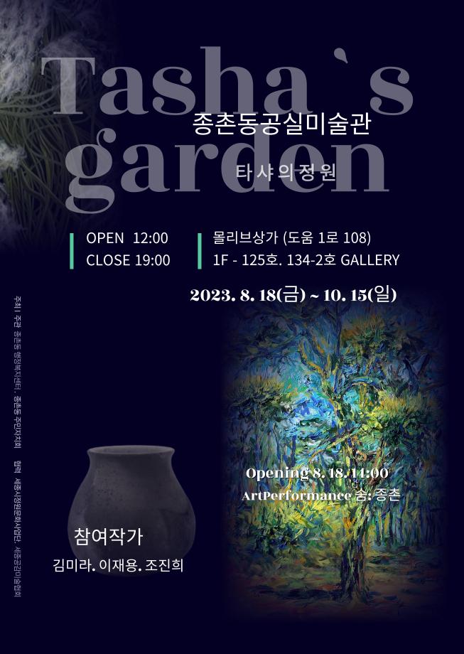 ‘타샤의 정원’은 일년내내 꽃이 지지 않는 ‘비밀의 화원’으로 미국의 가장 아름다운 정원으로 잘 알려져 있으며, 지역작가인 김미라, 이재용, 조진희 등이 참여한다.