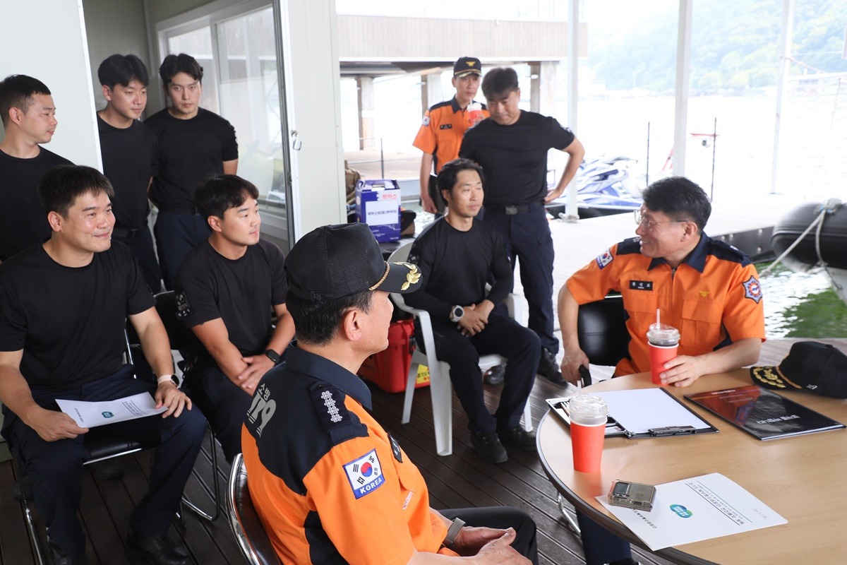 홍장표 북부소방재난본부장은 119시민수상구조대원과 특수구조대원들을 만나 “계속 되는 폭염속에서 고생이 많다”며 “수난사고 발생 시 빠른 대응을 할 수 있도록 긴장의 끈을 놓지 말고 계속 노력해 달라”고 격려했다.