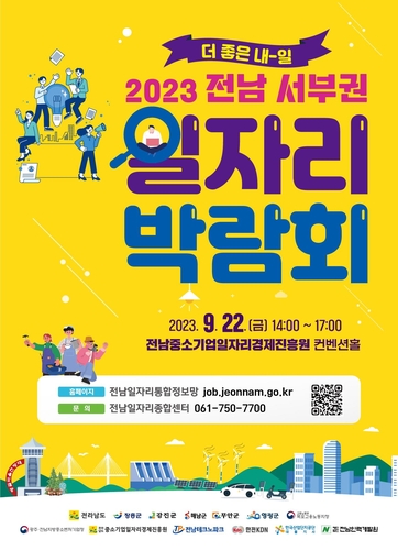 전남 무안군은 오는 9월 22일(금) 전남중소기업일자리경제진흥원(삼향읍 남악 소재)에서 개최 예정인 '2023년 전남 서부권 일자리 박람회'에 참여할 기업을 모집한다고 밝혔다.