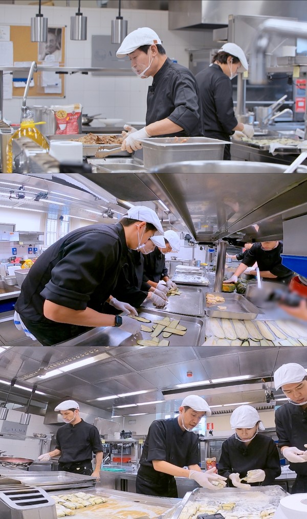 이런 가운데 급식 당일 주방을 진두지휘하던 이연복 셰프는 최고난도 공정에 예민하고 날 선 반응을 보이며 “가지 요리 성공 못 시키면 안 돼”라며 엄포를 놓는다. 이에 모든 멤버가 일사불란하게 움직여 가지복주머니 요리에 투입됐다는 후문이다.