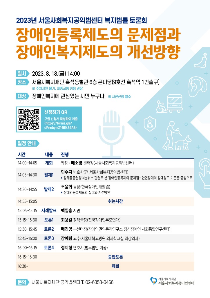 - 18일(금) 서울시복지재단 흑석동 별관…법조계, 학계, 장애인단체 등 전문가 참석