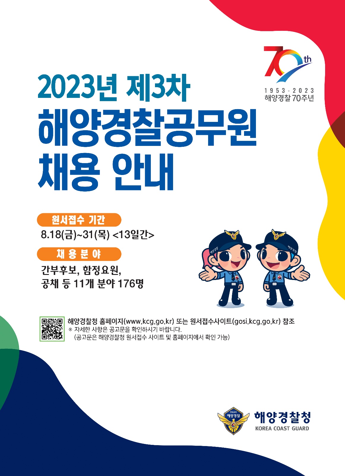 해양경찰관계자는 2023년 해양경찰청에서 주관하는 마지막 정기 채용시험인 만큼 응시자들은 본인이 응시할 채용분야에 대하여 세심한 관심을 가지고 지원하여 좋은 결실을 맺기를 기대한다고 밝혔다.