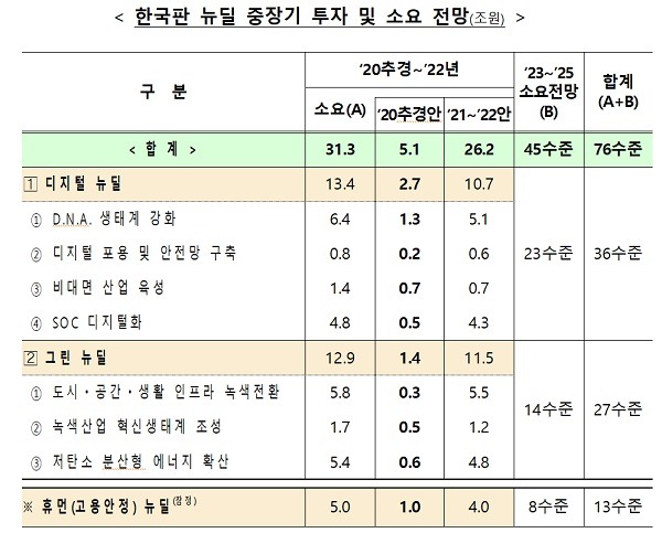 포스트 코로나 시대 새로운 성장발판 마련을 위한 ‘한국판 뉴딜’에는 5조1000억원을 투입하면서 5년간 76조원 투입을 위한 대장정을 개시한다.