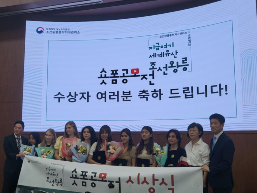문화재청 궁능유적본부 조선왕릉중부지구관리소는 지난 18일 오전 11시30분 삼육대학교 국제교육관(서울시 노원구)에서 삼육대학교에 다니는 주한 외국인 유학생을 대상으로 진행했던‘조선왕릉 숏폼영상 공모전’(6.19.~6.21.)의 우수작품 시상식을 개최하였다.