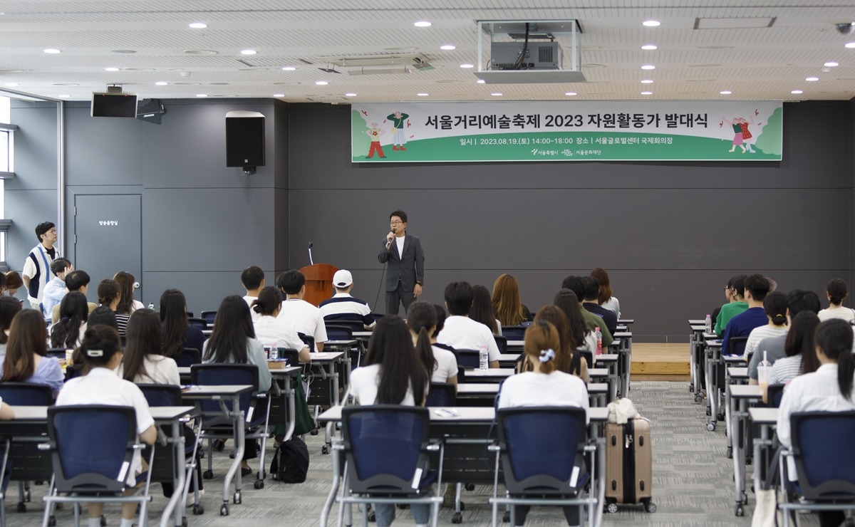 지난 2019년 <서울거리예술축제> 폐막 이후 팬데믹으로 인해 멈췄던 자원활동가를 모집한 것은 4년 만이다. 서울 종로구 서울글로벌센터에서 개최된 발대식 현장에는 20대부터 최연장자 68세까지, 선발된 총 89명이 모여 각종 안내와 안전교육을 숙지하고 앞으로의 계획을 공유했다.