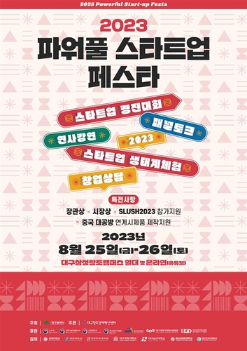 대구광역시는 지역 최대 스타트업 축제인 '2023 파워풀 스타트업 페스타'를 오는 8월 25일부터 26일까지 이틀간 대구삼성창조캠퍼스에서 개최한다.