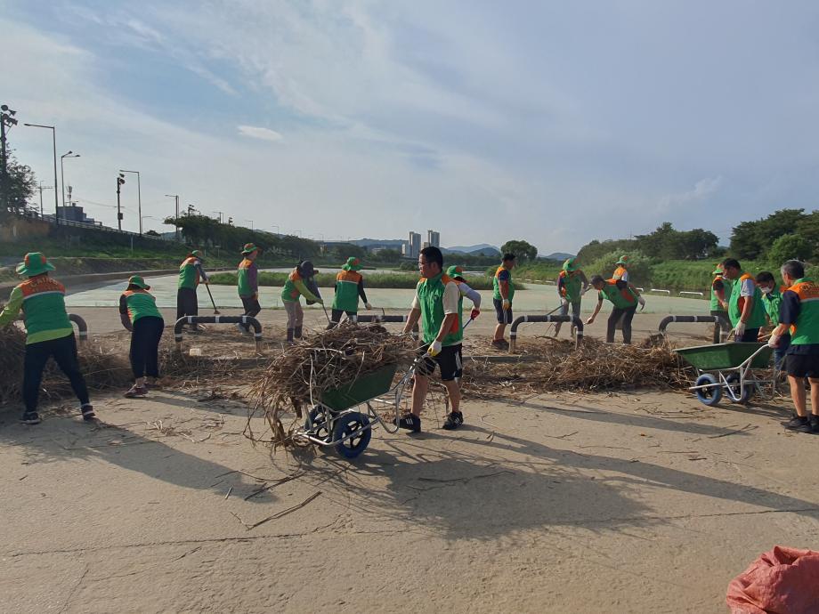 세종특별자치시 조치원읍이 세종시 자율방재단과 합동으로 21일 조천 공공체육시설 환경정화 활동을 실시했다.