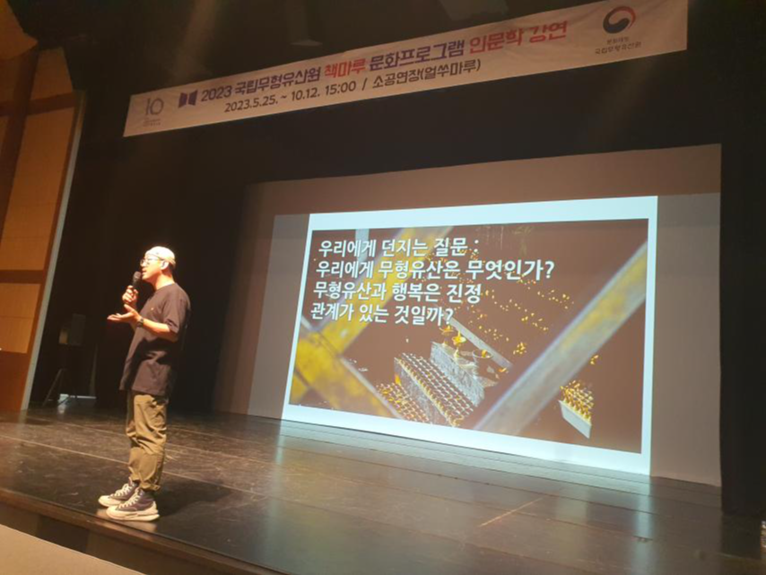 국립무형유산원은 2018년부터 일상 속 무형유산의 가치와 의미를 알리기 위해 <책마루 문화프로그램 인문학 강연>을 운영 중이며, 올해에는 개원 10주년을 맞아 ▲ 5월 25일 ‘K-콘텐츠 속 우리 무형유산의 가치’(공연예술가 팝핀현준)를 주제로 한 첫 강연 이후 ▲ 6월 15일에는 여행작가 정태겸이 ‘세계 속에서 발견한 우리 무형유산의 미래’라는 주제로 강연을 진행한 바 있다.