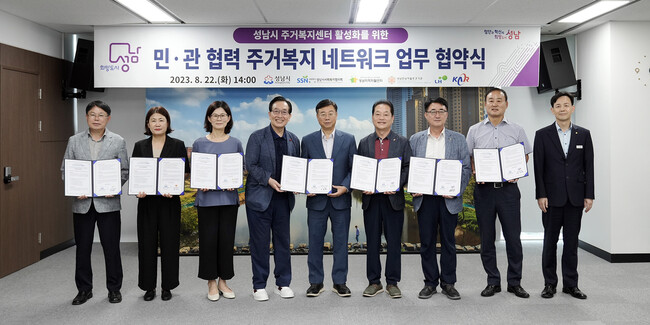 신상진 성남시장은 “이번 협약을 시작으로 민·관이 긴밀히 협력해 지역사회 내 주거취약계층에 대한 정보를 공유하고 주거복지 대상자를 추가 발굴해 취약계층에게 맞춤형 주거복지서비스가 제공되도록 최선을 다하겠다”고 말했다.