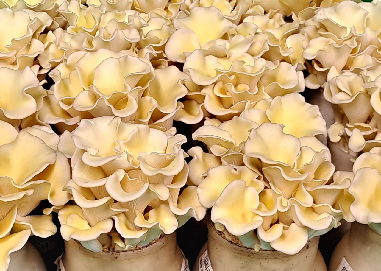 황금산타리는 경기도농업기술원이 젊은 세대를 위해 개발한 이색버섯이다. 노랑색 버섯으로 일반 느타리에 비해 단백질 함량이 높고 지방과 탄수화물이 적다. 폴리페놀, 베타글루칸 함량이 풍부해 혈관 노화 억제에 효과적이고 혈압을 낮추는 효과가 우수하다.