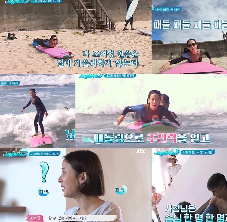 조여정은 "너무 좋았다. 못 일어나도 바다에서 계속 넘어지고 파도를 잡으려고 하는 것 자체가 다른 생각을 전혀 못 해서 좋았다"라며 안방극장에 서핑의 묘미와 힐링을 온몸으로 전달했다.