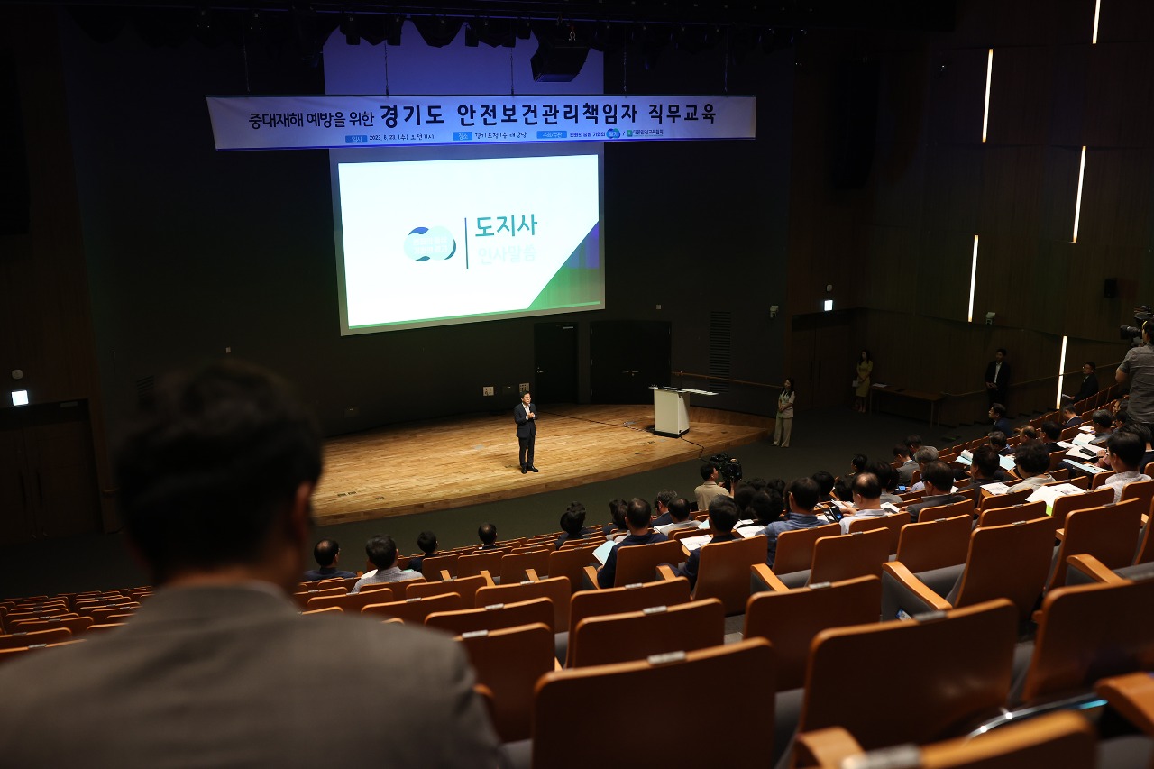김 지사는 “최근에 여러 가지 사건사고들이 있었다. 오송지하차도에서 많은 분들이 희생을 당하셨고, 성남 SPC 빵공장에서 끼임사고로 노동자가 사망하는 사고가 있었다. 작년에 평택에서도 유사한 사고가 있었는데 또 그런 일이 벌어져서 몹시 안타깝고 마음이 무겁다”며 “오늘 교육은 중대재해와 관련해 우리가 적극적으로 대처하려고 하는 첫 걸음”이라고 말했다.
