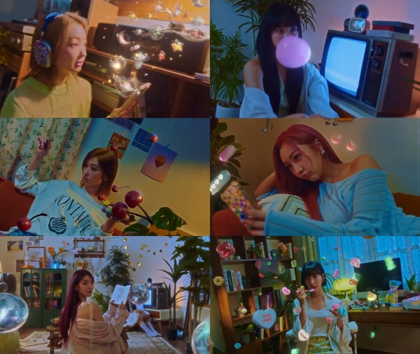 먼저 공개된 첫 번째 티저 속 시크릿넘버는 키치하고 자유분방한 매력을 드러냈다. 시공간이 멈춘 듯한 신비로운 분위기의 방안에서 책을 들고 있거나 풍선을 부는 멤버들의 유니크한 제스처와 표정 연기가 몰입감을 높인다.