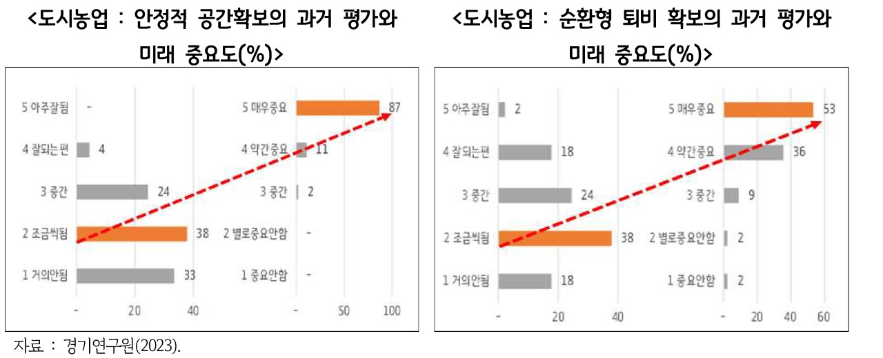 경기연구원은 이 같은 경기도 도시농업에 대해 수도권 일원에서 활동하는 도시농업경력 10년 이상의 전문가 45명에게 향후 과제 등을 물었다.