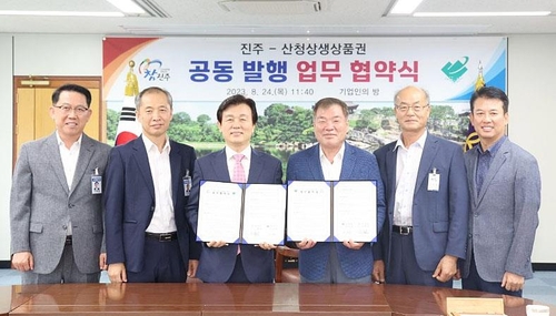 24일 산청군과 진주시는 진주시청 기업인의 방에서 '산청-진주 상생상품권 발행을 위한 업무협약식'을 가졌다고 밝혔다.