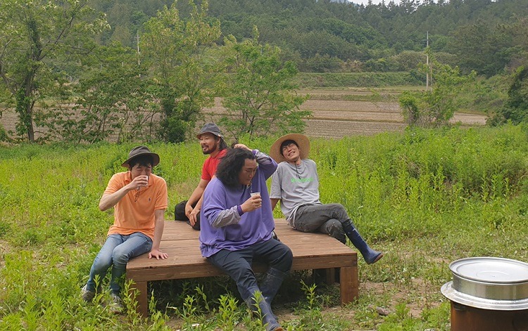 공개된 사진에는 직접 만든 평상에 앉아 여유로운 시간을 보내며 행복함이 가득한 최귀화와 후배 배우 권윤구, 권오율, 김진만의 모습에서 따뜻한 현장 분위기를 고스란히 느낄 수 있다.