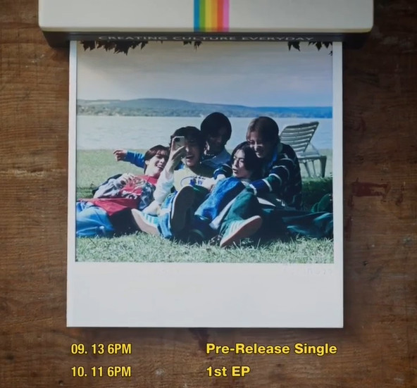 'CREATING CULTURE EVERYDAY'(크리에이팅 컬쳐 에브리데이)라는 공식 슬로건과 함께 파우 다섯 멤버가 함께 찍은 폴라로이드 이미지가 인화되는 모션이 담겨 눈길을 사로잡는다.