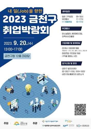 금천구는 9월 20일 우수한 직원을 채용하려는 기업과 양질의 일자리를 찾고 있는 구직자를 위해 '내 일(Job)을 향한 2023 금천구 취업박람회'를 개최한다고 밝혔다.