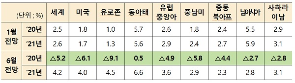 세계은행은 선진·개도국 등 전 지역의 성장률 전망이 1월 대비 하향 조정됐으며, 동아태를 제외한 전 지역에서 마이너스 성장을 전망했다.