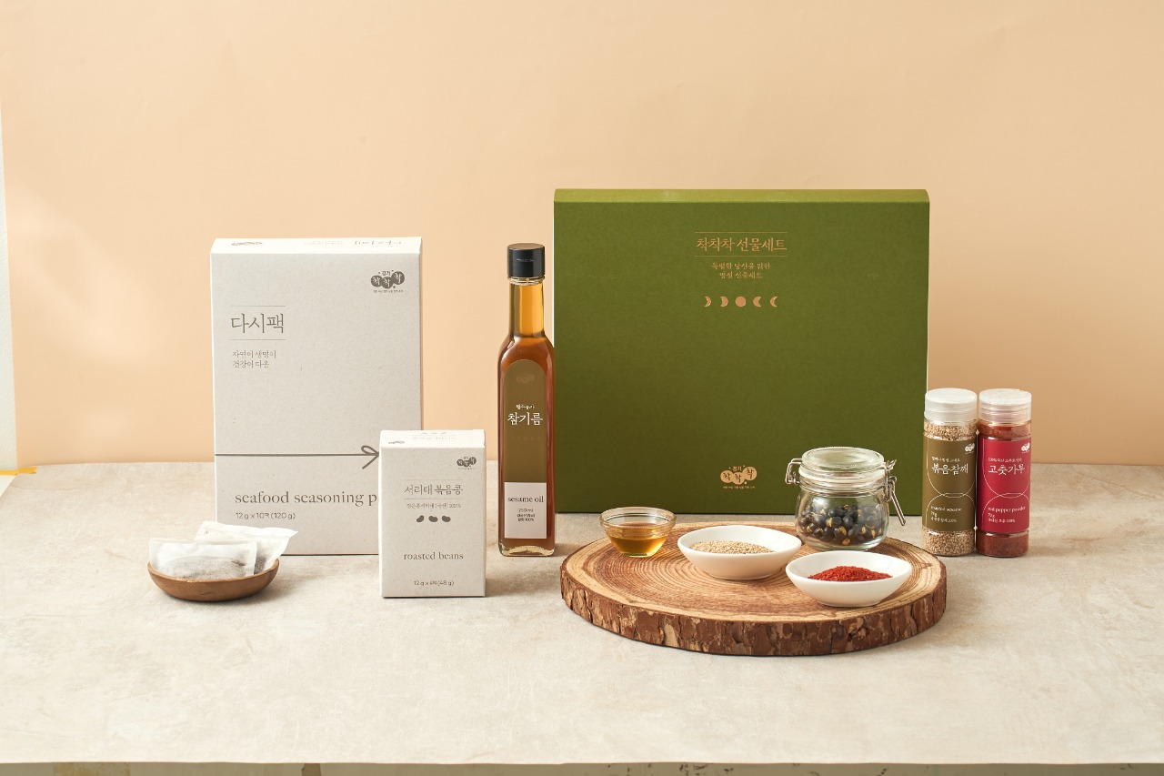 ‘착착착 사랑담은 선물세트’는 국내산 육수팩과 고춧가루, 볶음참깨, 볶은콩 등 활용도 높은 한식 조미 재료로 구성됐다. 기름류는 외국산 참기름과 국내산 들기름·참기름 중에서 고를 수 있어 소비자 선택 폭을 넓혔다. 선물세트에 포함된 모든 제품은 경기도 소재 노인일자리전담기관과 여성기업, 청년기업, 중증장애인기업 등에서 생산됐다.