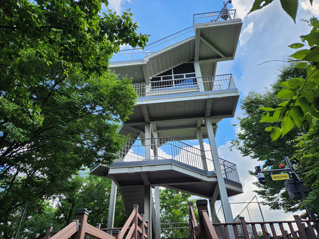 성남시는 대원근린공원 내 노후된 산불감시탑을 허물고 그 자리에 산불감시시설을 겸한 4층(16m) 높이의 전망대를 새로 지었다.