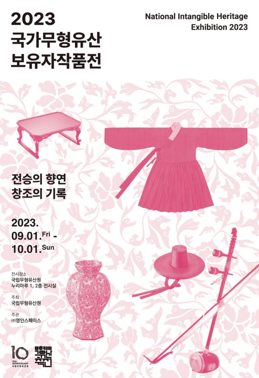 문화재청 국립무형유산원은 2023년 국가무형유산 보유자작품전 「전승의 향연, 창조의 기록」을 9월 1일부터 10월 1일까지 국립무형유산원(전라북도 전주시) 누리마루 기획전시실에서 개최한다.