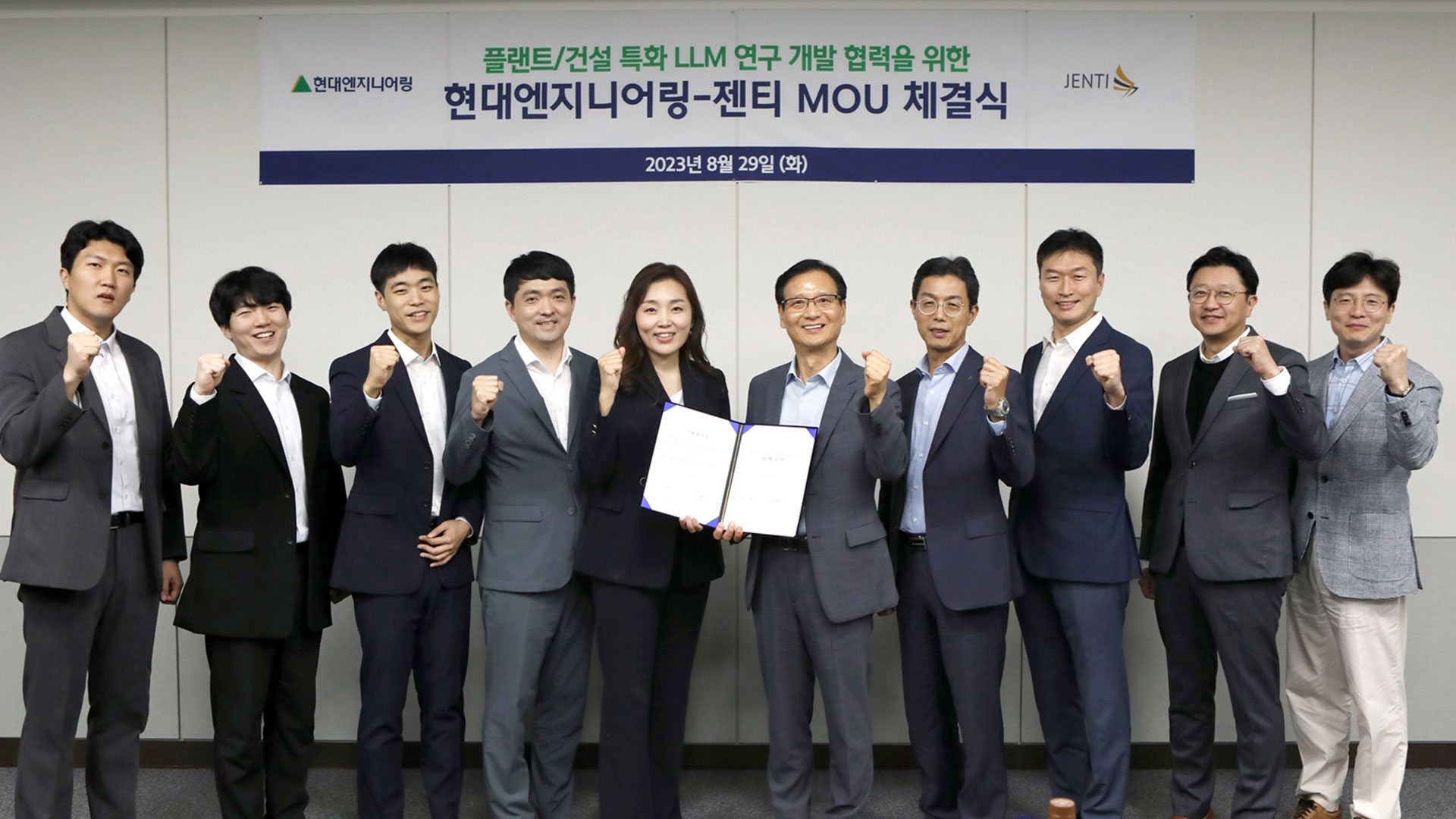 현대엔지니어링은 인공지능 연구개발 스타트업 ‘젠티(대표 최은진)’와 ‘플랜트 및 건설 분야 특화 LLM(Large Language Model) 연구 개발’을 위한 MOU를 지난 29일(화) 체결했다고 밝혔다.