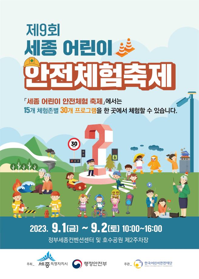 시는 내달 1일부터 2일까지 정부세종컨벤션센터 및 호수공원 제2주차장에서 어린이 종합 안전체험교육인 ‘제9회 세종 어린이 안전체험축제’를 개최한다고 28일 밝혔다.