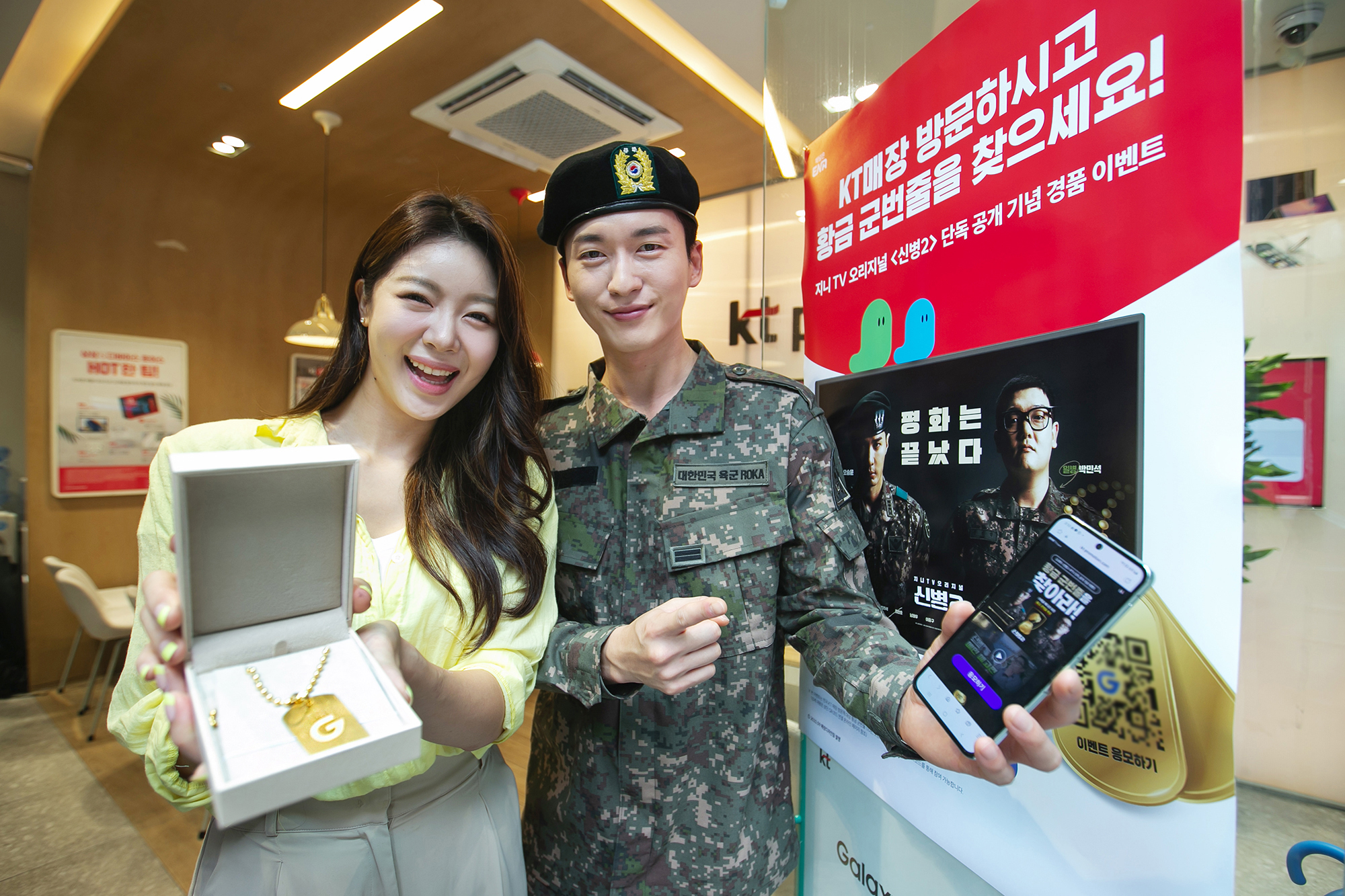 KT가 지니 TV 오리지널 <신병2> VOD 단독 공개 기념으로 KT 전국 오프라인 매장에서 ‘황금 군번줄을 찾아라’ 이벤트를 진행한다고 1일 밝혔다.