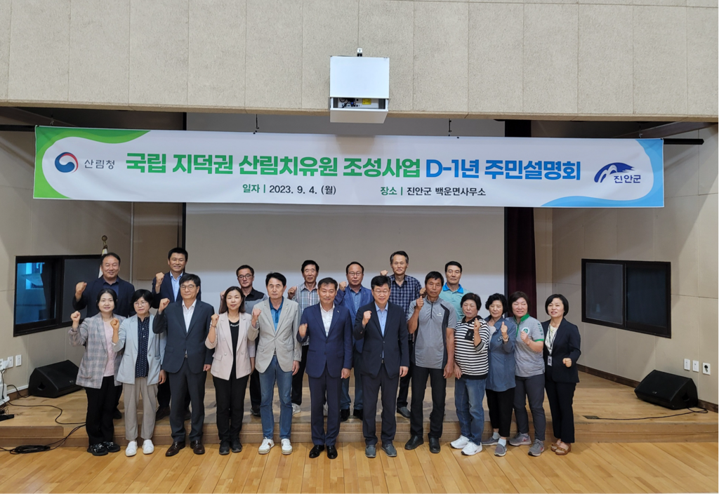 산림청과 진안군은 9월 4일 진안군 백운면사무소에서 국립지덕권산림치유원* 준공을 1년 앞두고 주민설명회를 개최했다.