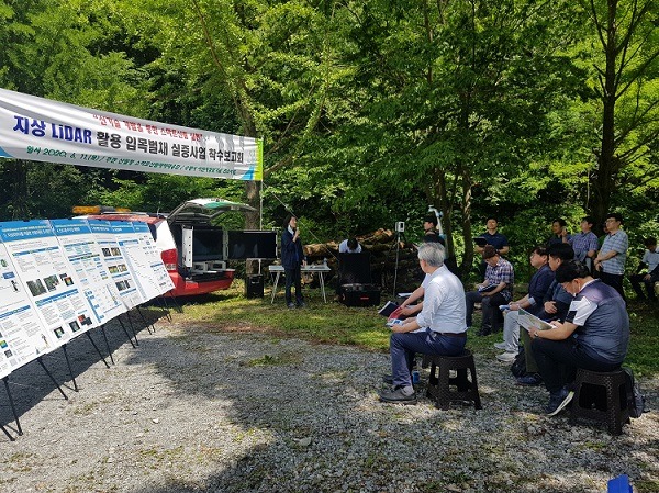 ‘지상 라이다를 활용한 입목 자원량 조사 실증사업’은 나무의 높이와 줄기 둘레를 사람이 일일이 직접 조사해야 하는 기존 방법에서 편리성과 효율성을 높인다는 목표를 갖고 있다. 본 사업에서 활용되는 지상 라이다 장비는 레이저(전파탐지기)를 사방으로 보내어 자동으로 나무의 높이와 부피 등 다양한 정보를 컴퓨터 자료화한다.