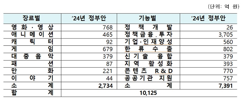 이 밖에도 K-컬처 유니콘 기업 육성에 20억 원, 글로벌 문화-기술 융합형 인재 육성에 36억 원, 인공지능 AI 콘텐츠 제작에 92억 원을 각각 편성했다.