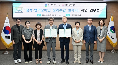서구는 7일 오전 서구청 나눔홀에서 ㈔한국농아인협회 광주광역시 서구지회(회장 정영동)와 '소확행 수납 인테리어사업' 업무협약을 체결했다.