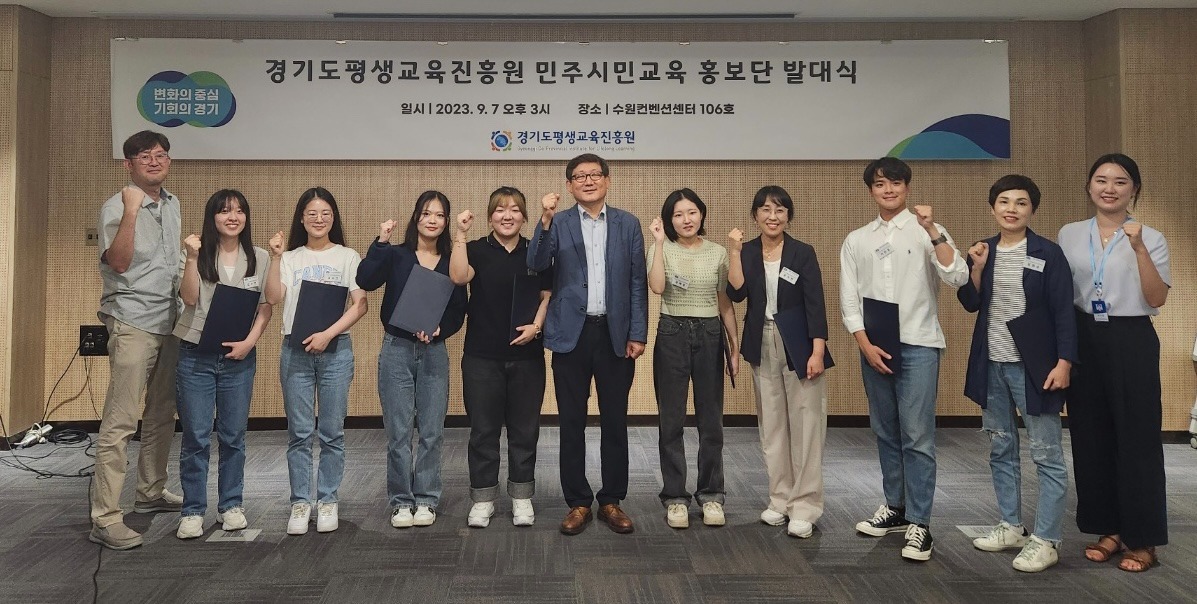 경기도평생교육진흥원 민주시민교육지원센터가 수원컨벤션센터에서 2023년 ‘민주시민교육 인식개선 대학생 홍보단’ 발대식을 7일 개최했다.
