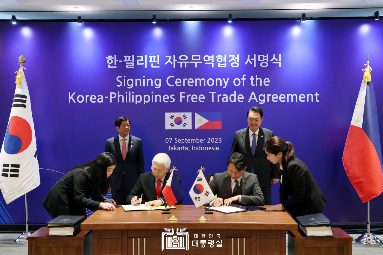 산업통상자원부는 7일 아세안 정상회의가 열리는 인도네시아 자카르타에서 양국 정상이 지켜보는 가운데 안덕근 통상교섭본부장과 알프레도 에스피노사 파스쿠알(Alfredo Espinosa Pascual) 필리핀 통상산업부 장관과 FTA 협정에 정식 서명했다고 밝혔다.