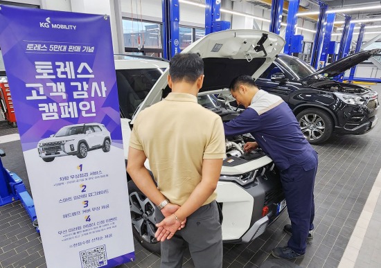 토레스 고객 감사 캠페인은 오는 9월 11일부터 27일까지 17일간 KG 모빌리티 전국 310여 개 서비스네트워크에서 동시 실시하며, 이 기간 입고하는 토레스는 △에어컨/히터 작동상태 및 필터 점검 △엔진오일 누유 점검 및 보충 등 각종 오일상태 점검 △브레이크 상태 점검 △타이어 마모 및 공기압 상태 점검 △부동액 점검 및 보충 등 10개 항목에 대해 무상점검 서비스도 받을 수 있다.