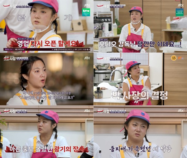 얼굴이 벌겋게 달아오를 정도로 열일을 하던 박나래는 자신도 모르는 사이 화상을 입기도. 그런 와중에도 장사를 하겠다는 의지를 드러냈지만, 결국 박나래는 응급실로 향했다.