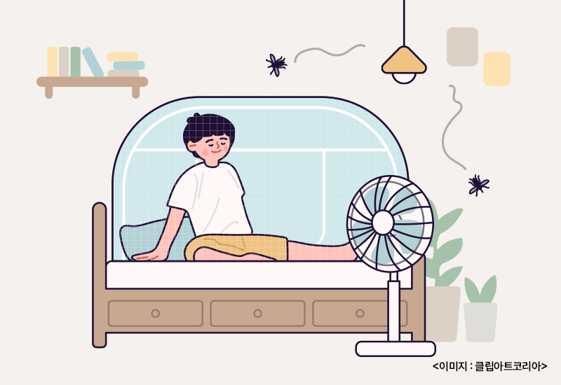 - 가정 내 방충망을 정비하고, 캠핑 등 야외 취침 시 텐트 안에 모기장 사용하기
