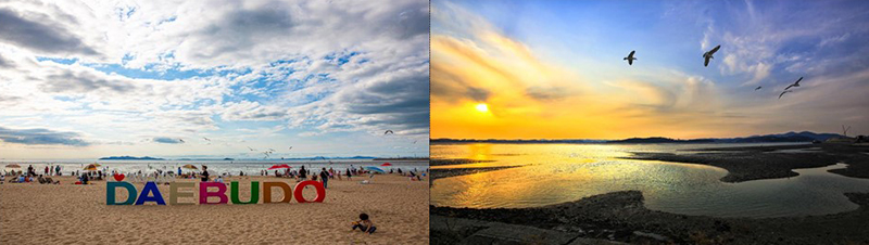 낙조가 아름다운 섬 대부도는 선선한 가을철에 갯벌을 체험하고 조망하기에 좋다.