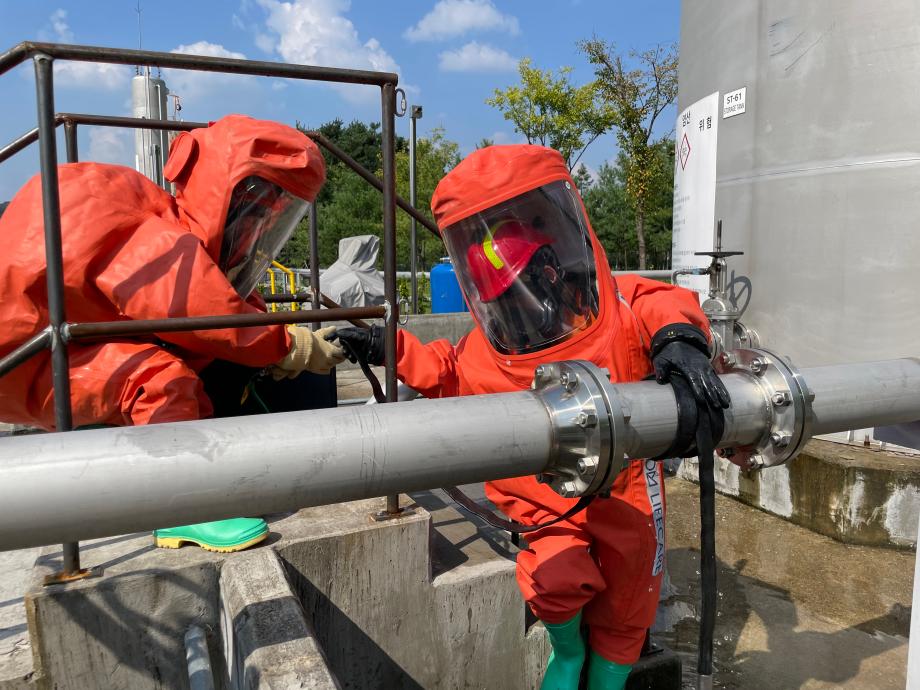 이날 훈련은 운반·제조·저장시설별 유해화학물질 누출사고를 차단하기 위해 ▲사고방지 안전교육 ▲유해물질 차단 장비를 활용한 시설·유형별 누출 차단 훈련 ▲훈련 강평 및 피드백 순으로 진행됐다.