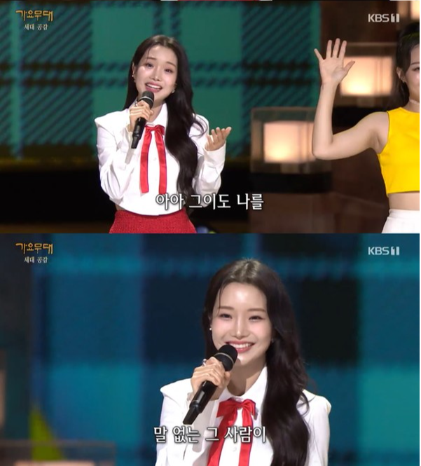 빨간 리본으로 포인트를 줘 발랄한 매력이 한껏 느껴지는 의상을 입고 등장한 김소연은 ‘세대 공감’이라는 주제에 잘 어울리는 20살의 풋풋한 에너지와 완벽한 비주얼을 뽐냈다.