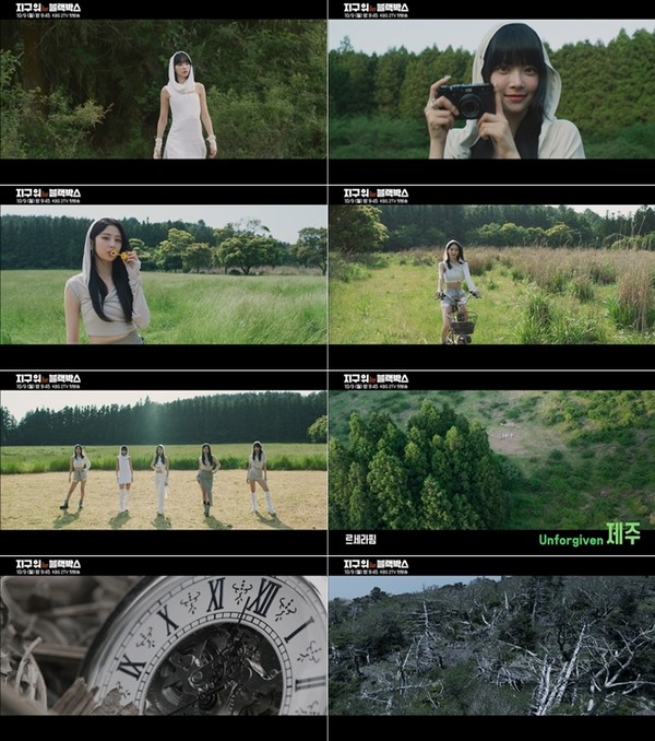 이 가운데 '지구 위 블랙박스' 측은 글로벌 아이돌로 자리매김한 르세라핌이 제주 숲의 요정으로 변신해 펼친 1분 퍼포먼스 영상을 공개(https://youtu.be/8TiBLqdj6As). 다섯 멤버들이 숲의 요정으로서 펼치는 싱그러움과 청량감 가득한 군무가 화제를 불러모은다.