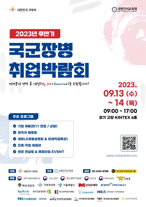 국방전직교육원 주관으로 열리는 이번 행사는 국군장병 1만명을 대상으로 진행되며 70여 곳의 구인기업 및 유관기관이 참가한다.